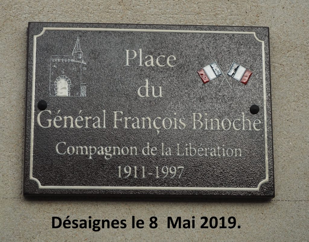 Le 8 mai 2019 Désaignes a donné le nom du Général Binoche à la place dite « du Monument au Morts ».